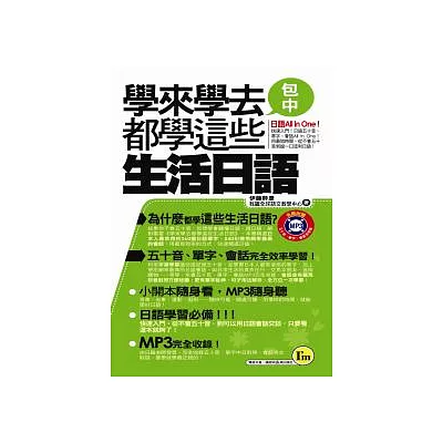 小開本隨身看,MP3隨身聽! ■ 日語All in One!快速入門 ! 日語五十音、單字、會話All in One ! 用最短時間,從不會五十音到一口流利日語 ! ■ 為什麼都學這些生活日語?如果你不會五十...more