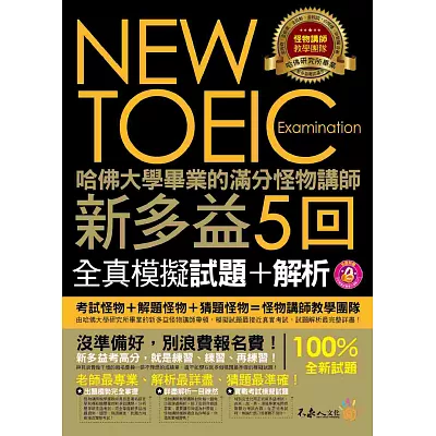 哈佛大學畢業的滿分怪物講師 NEW TOEIC 新多益5回全真模擬試題+解析 (附2書+1CD+防水書套)
