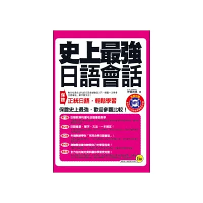 本書特色 從日語會話一次學會日文句型、文法、單字! 死記單字、累積單字量的日語學習法已經落伍!本書教你直接從生活化的情境會話著手,在熟悉日文實用句型的同時,自然而然學會日文單字與文法,再...more