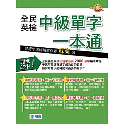 ◆精準掌握中級出題率最高2000單字◆ ◆貼心設計考前倒數準備◆ ◆附三回複習小測驗◆ ★選對單字書,讀一本就通 時間就是要花在刀口上,完全收錄全民英檢中級重點單字,只背真正會考的...more