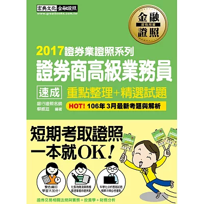 快一點!準一點!好一點!選對考照用書-你也可以是「一次考上」的「證照達人」! 100天考取17張金融證照達人「柳威廷」不藏私,親身傳授快速考取「證券商高級業務員(高業)」的技巧!全書彙整考...more