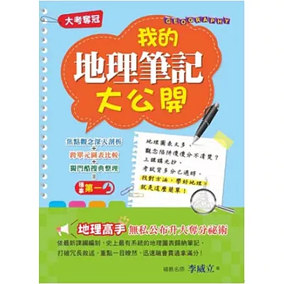 開啟地理的任意門 也許你會問,讀地理有沒有撇步?確實有撇步,並且早在高手圈中廣為流傳。筆者以多年豐富的教學經驗,首重多版本的跨冊整合,精選必讀的內容,破除學習上的盲點,重新調整學習步驟。...more