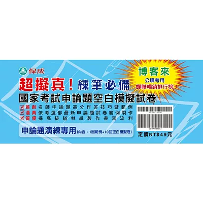 適用對象 參加各類三、四等公職考試的人 適用時間 無期限 使用功效 模擬考申論試題最佳工具。 改版差異 104年國家考試日程表 本書特色 內含:1回範例+10回...more