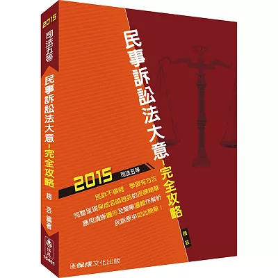 適用對象 1 欲報考司法五等考試的考生 2 欲對民事訴訟法詳加研究之考生 適用時間 無限制 使用功效 1.將抽象散亂之條文體系化,並有邏輯作重點說明,使考生快速記憶、正確答...more