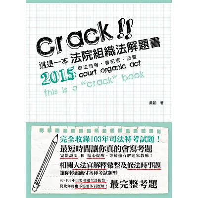 本書特色 為什麼要買這本?作者告訴你 學習法院組織法的五大步驟 一、由憲法「權力分立」的角度切入,清楚認知法院組織法的制定目的。 二、完整掌握法院組織法的規範架構。 三、明...more