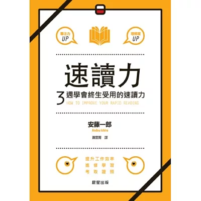 3星期的時間,讓你用比現在快3倍的速度體會閱讀樂趣 只要掌握3步驟: 1:訓練眼球的移動方式 2:學會能成為記憶的閱讀方式 3:讓頭腦習慣快速閱讀 將比以前更快速理解並轉換成知...more