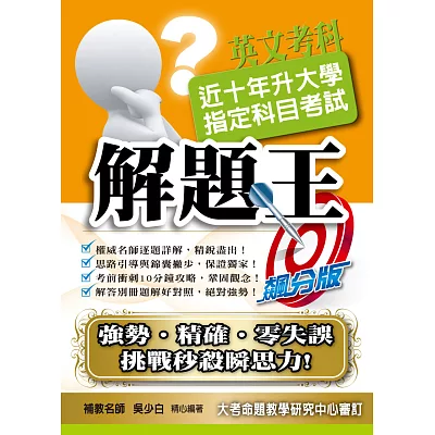 最新飆分版指考歷屆試題,配合詳盡解析,穩扎穩打厚實功力。 解題百戰王,讓考試easy & friendly! 考試範圍都讀完了,但還是覺得心有不安? 那是因為還沒做近十年考題 做了近十年...more