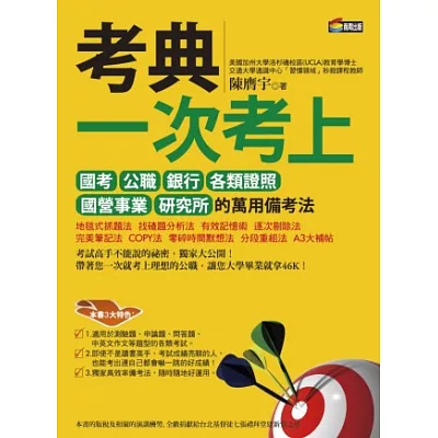 一次考上 國考、公職、銀行、證照、國營事業、研究所的萬用備考法 考試高手不能說的祕密,獨家大公開! 帶著您一次就考上理想的公職, 讓您大學畢業就拿46K! 本書3大特色 ...more