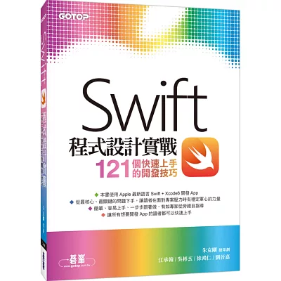 *使用Apple最新語言Swift+Xcode6開發App! *本書羅列121個最重要的App開發核心問題,是想要快速進入App設計殿堂的最佳參考書籍。 *涵蓋最重要也最基礎的App設計技術,包含Storyboard、表格、手...more
