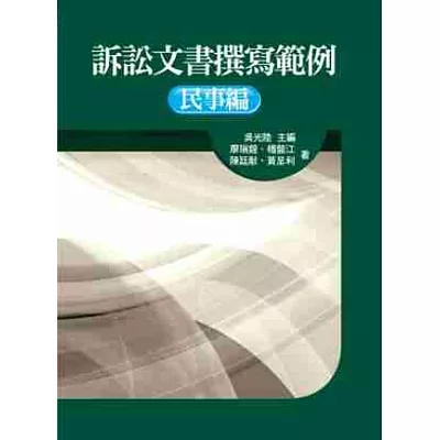 本書為五南文化圖書公司所出版最具實用性質之「訴訟文書撰寫範例」系列中之民事編,其內容是以法院辦理之民事訟事件為主,書中分有導論、民事書類及各類型訴訟;而在民事書類中,又分有程序類、訴訟...more