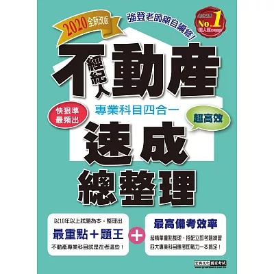 強登老師說:「真的沒時間準備考試?」-那就讀這本吧! 本書乃應廣大「準備時間有限」的不動產經紀人考生量身訂作。全書內容經由強登老師去蕪存菁後,只留下「最精華命題焦點」以及「最頻出...more