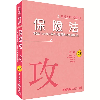 適用對象 1.想要參加律師、司法官、高考、法研所、保險所的學(考)生。 2.想要迅速掌握保險法重點的學(考)生。 3.想要全面提昇保險法的實力的學(考)生。 適用時間 無期限 ...more