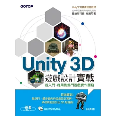 書附光碟DVD*1 Unity官方推薦認證教材/大中華區教育市場總代理商愛迪斯科技推薦用書 超激實戰!最熱門、最多面向的遊戲設計實例,依樣就能設計出3D好遊戲! Unity是一款跨平台的專業遊戲引擎,功...more