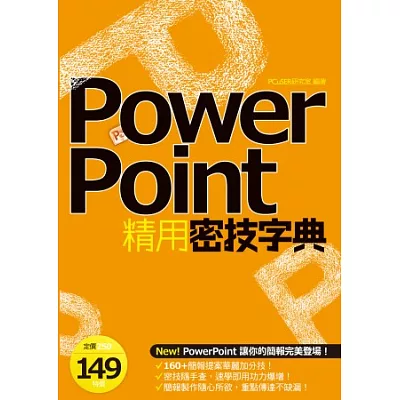 PowerPoint 2010精用密技字典就是讓你輕鬆查找,迅速完成精美簡報! *建立、管理及與他人共同作業,提高合作效率*使用視訊、圖片及動畫,建立令人驚奇的簡報內容*從多個位置存取及共用你...more