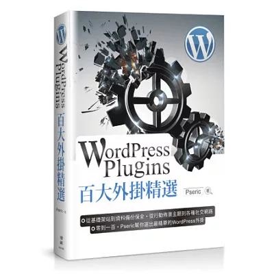 從基礎架站到資料備份保全 從行動佈景主題到各種社交網路 零到一百,知名部落格站長Pseric親自精選 百種WordPress Plugins外掛工具 從此不再擔心網誌平台終止服務 星...more