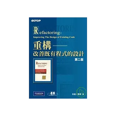 Refactoring Improving The Design of Existing Code 當物件技術成為老生常談之後 — 尤其在 Java 編程語言之中,新的問題也在軟體開發社群中浮現了出來。缺乏經驗的開發人員完成了大量粗劣設計,獲得...more