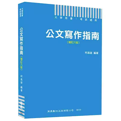 ![公文寫作指南[增訂六版]](https://imageproxy.pixnet.cc/imgproxy?url=https://im2.book.com.tw/image/getImage?i=http://www.books.com.tw/img/001/065/55/0010655595.jpg&v=54574b86&w=400&h=400&ver=20250714)